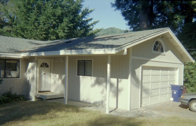 View from the front yard, towards the garage: