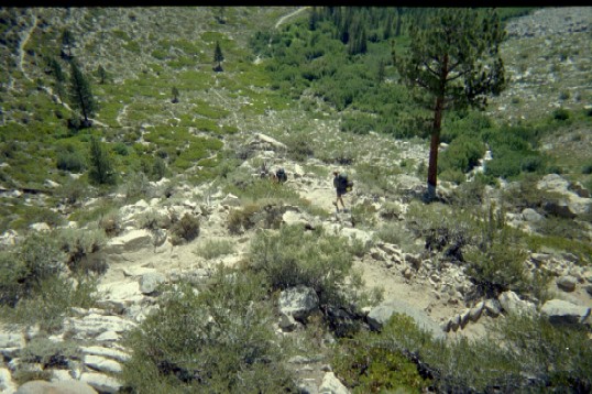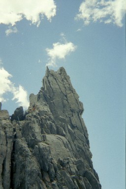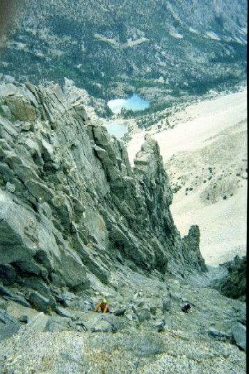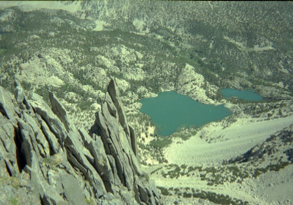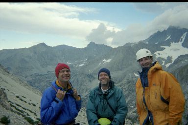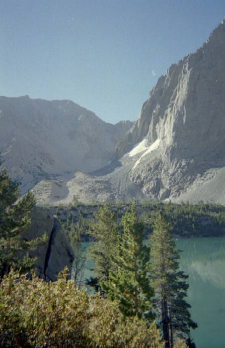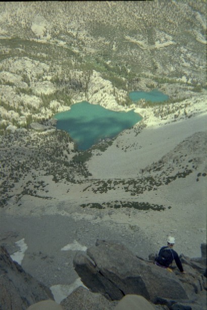 We left Sacramento early Monday morning, got packed in Bishop and drove up to the trailhead after lunch. We started hiking around 3pm. I knew that going from 500 feet to 10500 feet in one day was bad news. Sure enough, all of us were feeling the altitude, and we rested all Tuesday. Some of us did a bit of toproping and bouldering on the crags around Lake 2-3.